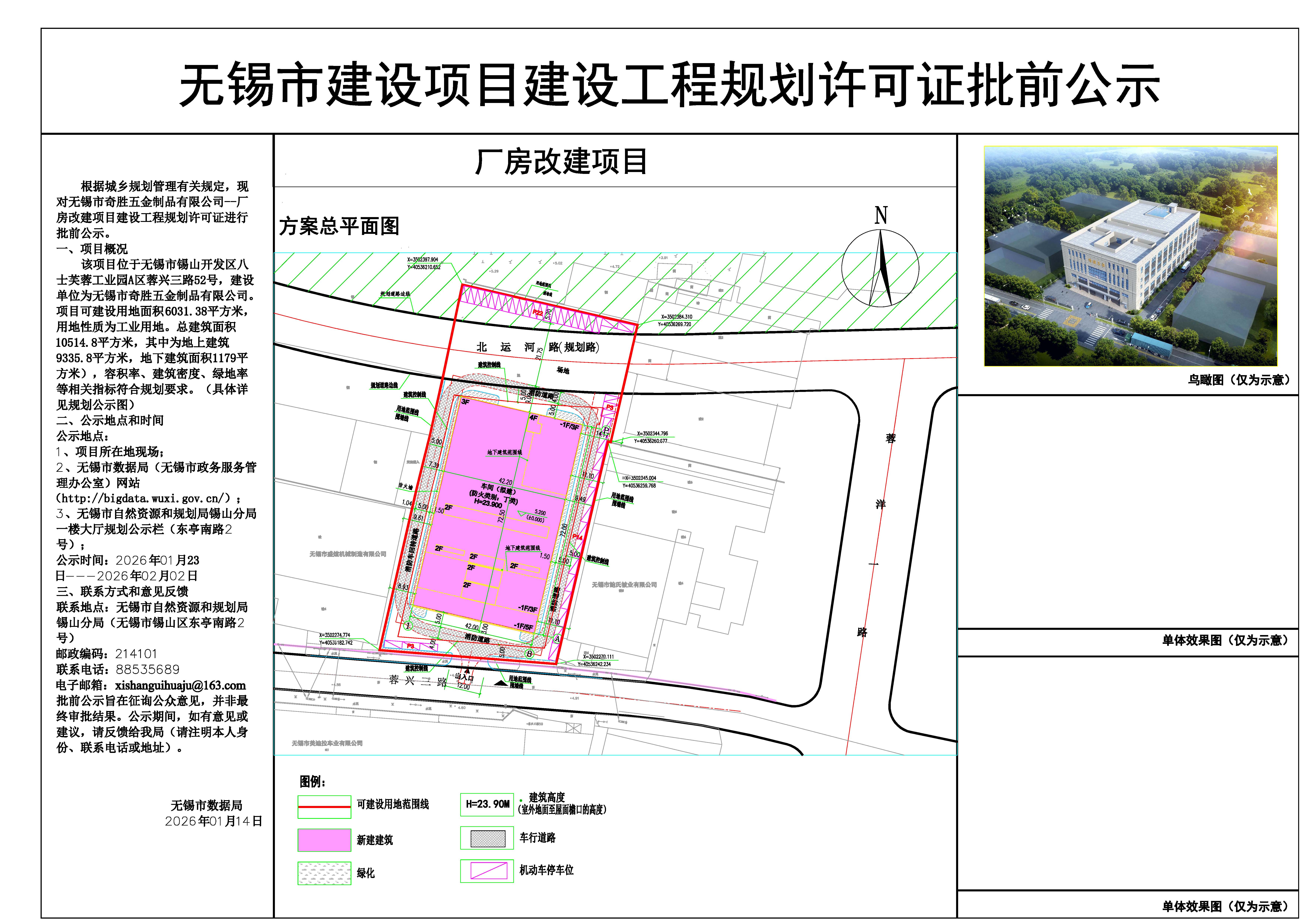 公示名称:无锡市奇胜五金制品有限公司厂房改建项目建设工程规划许可批前公示