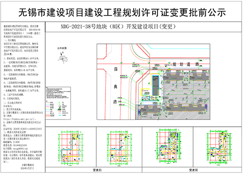 公示名称:无锡信硕房地产开发有限公司XDG-2021-38号地块(B区)开发建设项目(S1#)建设工程规划许可证变更批前公示