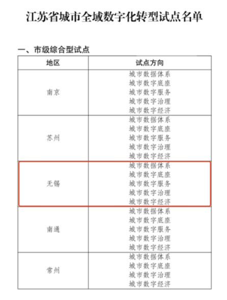 数字社会 绘就普惠图景:全力推进城市全域数字化转型,无锡纳入全省首批城市全域数字化转型市级综合型试点,宜兴获县级特色型试点,相关工作成效被国家数据局肯定。