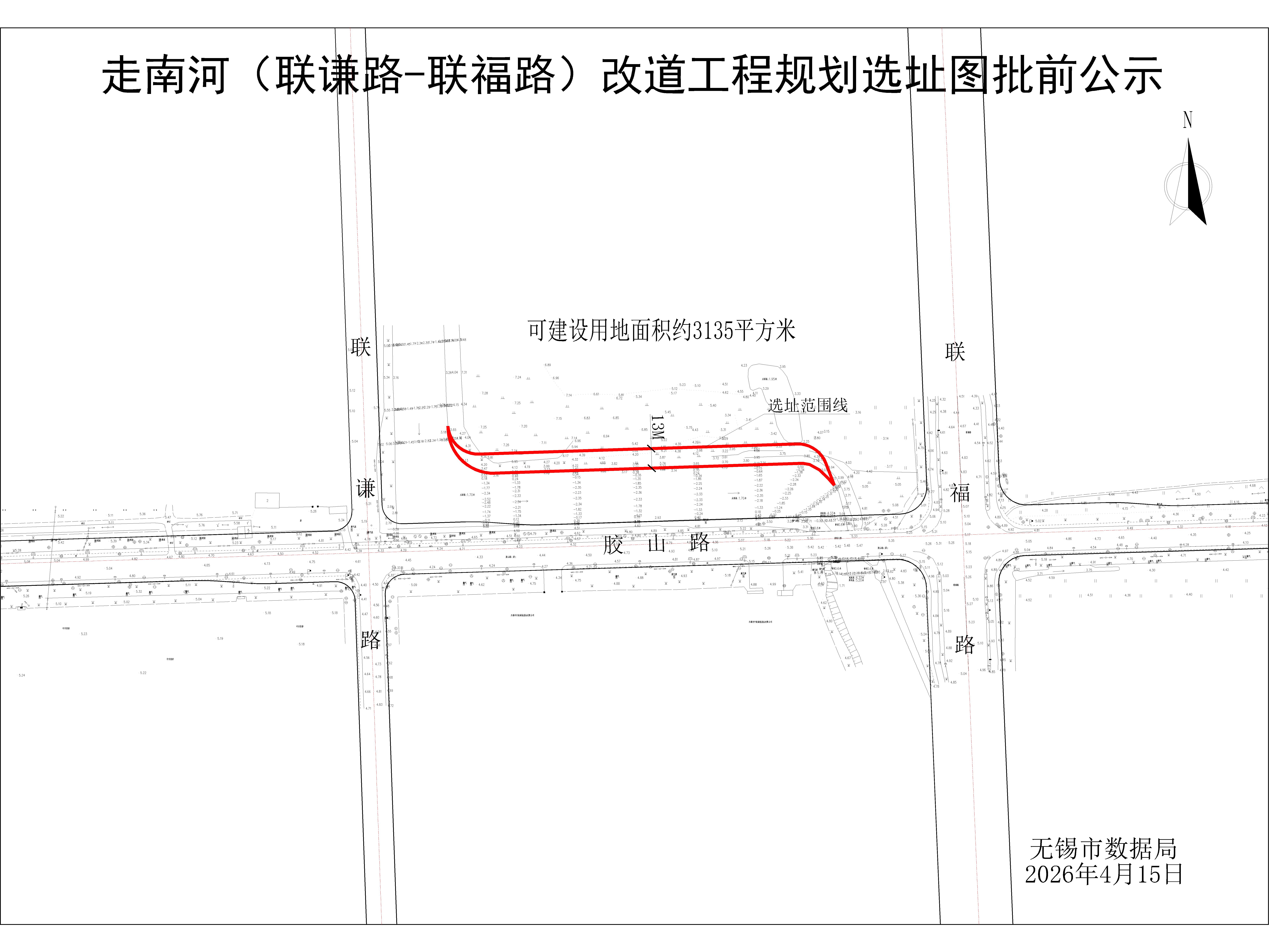 该项目位于锡山区厚桥街道,建设单位为厚桥街道办事处,走南河(联谦路-联福路)改道工程选址位于胶山路北侧、联谦路至联福路间,河道等级为5级,选址河道长度约270米,河道改线部分红线宽度为13米,可建设用地面积约3135平方米。(详见规划公示图)
