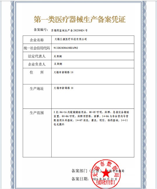 无锡市第一类医疗器械生产变更备案公告(2026年第010号)