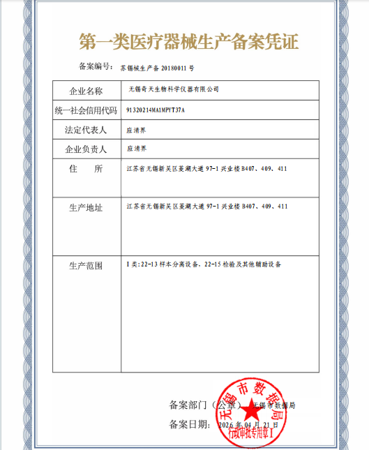 无锡市第一类医疗器械生产变更备案公告(2026年第011号)