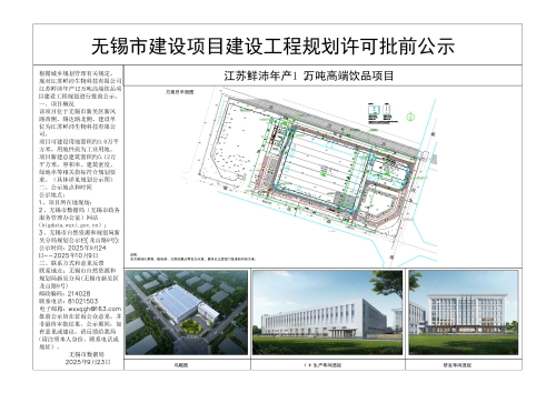 公示名称:江苏鲜沛年产12万吨高端饮品项目建设工程规划许可证批前公示