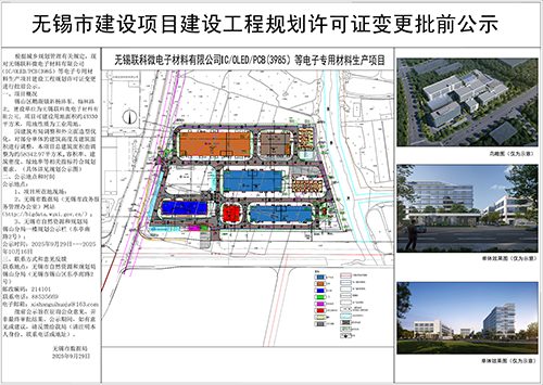 无锡联科微电子材料有限公司IC/OLED/PCB(3985)等电子专用材料生产项目建设工程规划许可证变更公示