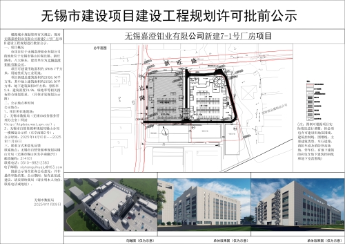 无锡嘉澄钼业有限公司新建7-1号厂房项目建设工程规划许可批前公示