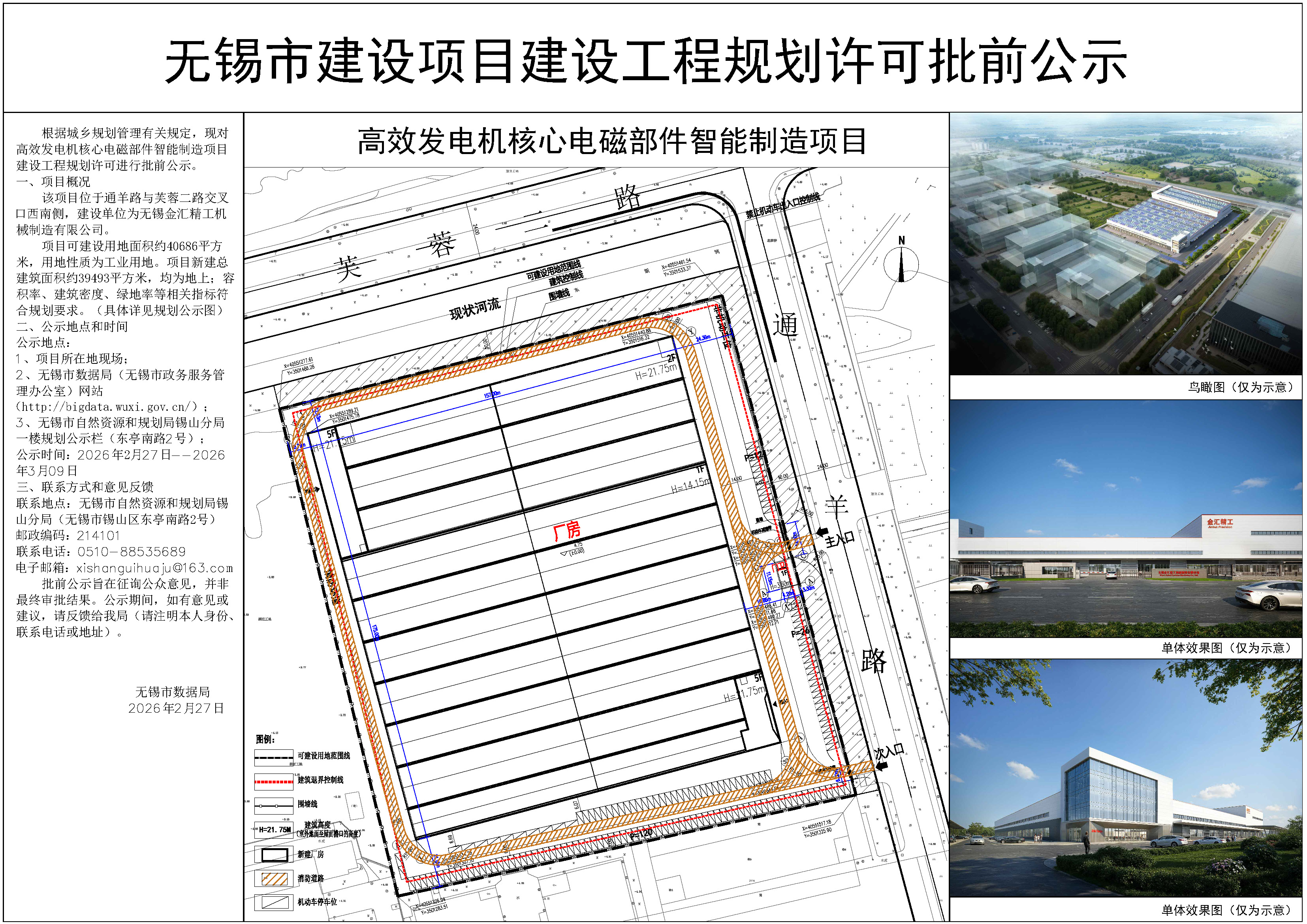 无锡金汇精工机械制造有限公司高效发电机核心电磁部件智能制造项目建设工程规划许可批前公示