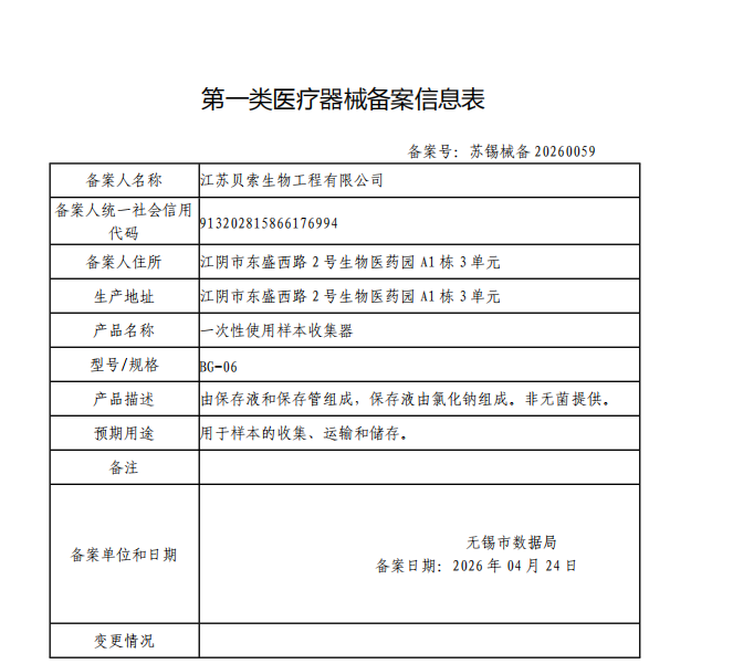 第一类医疗器械产品备案公告(第4022号)